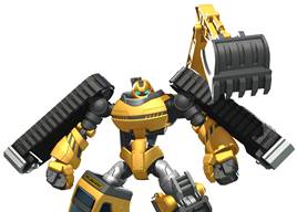 포크레인의 형태를 한 변신 로봇. 장난기와 호기심이 많은 성격. 로봇 피구대회에서는 포크레인 삽을 이용 한 기 술을 사용한다. 대표적인 기술로는 셔블 캐치, 셔블 스매시가 있다. 전투시에는 셔블 펀치를 사용해 악당 들 을 물 리친다.